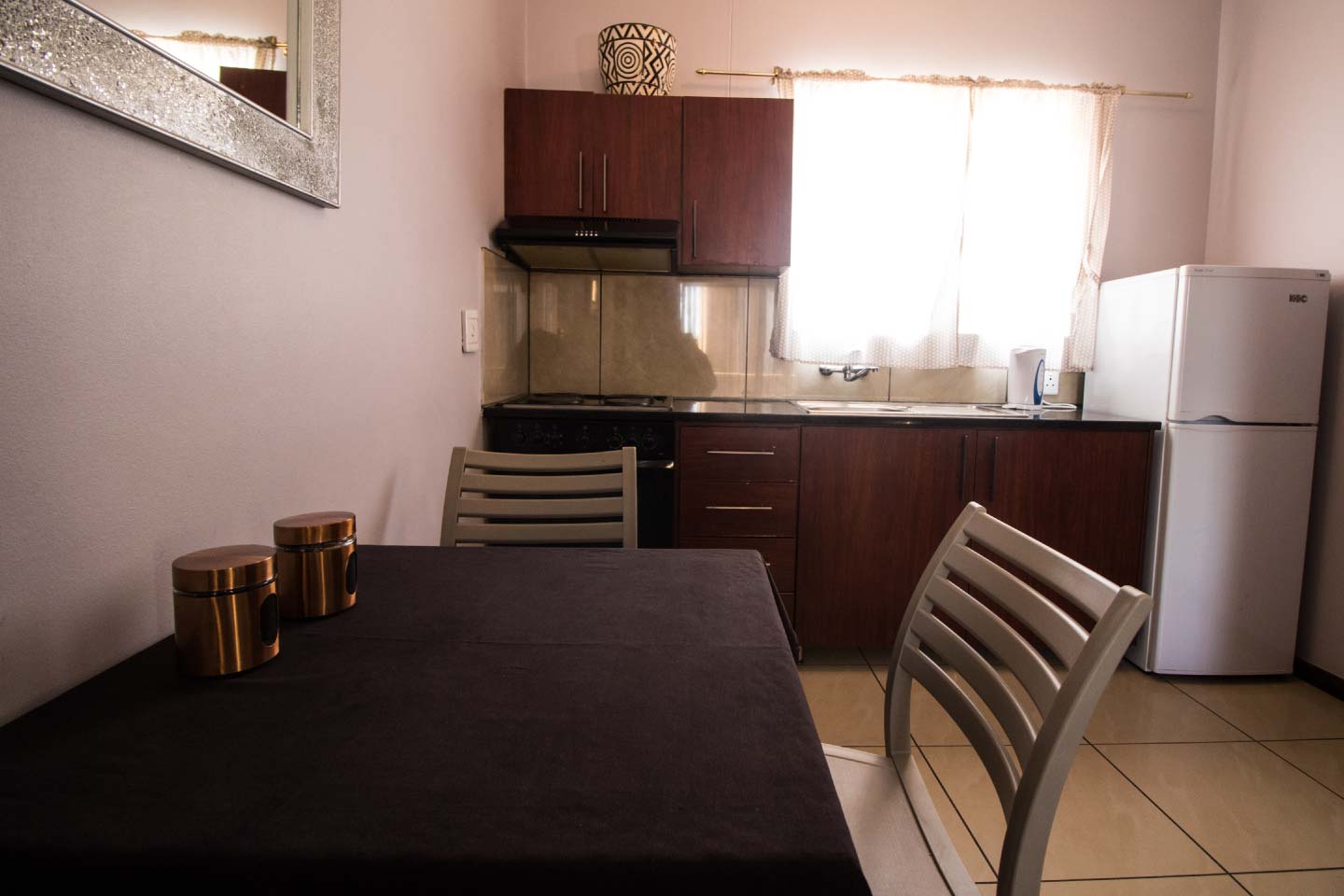 Nosso quarto triplo possui 3 camas de solteiro. O quarto triplo está equipado com uma televisão com DSTV, ar condicionado, geladeira, microondas e muito mais para fazer a sua estadia valer a pena.